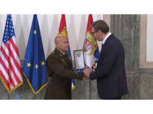 Predsednik Srbije Aleksandar Vučić uručio je danas komandantu Nacionalne garde Ohaja Džonu Harisu Orden srpske zastave drugog stepena i ocenio da se...