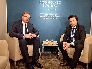 Predsednik Srbije Aleksandar Vučić učestvuje ovog jutra na sesiji Svetskog ekonomskog foruma u Davosu - Diplomatski dijalozi na temu Zapadnog Balkana,...