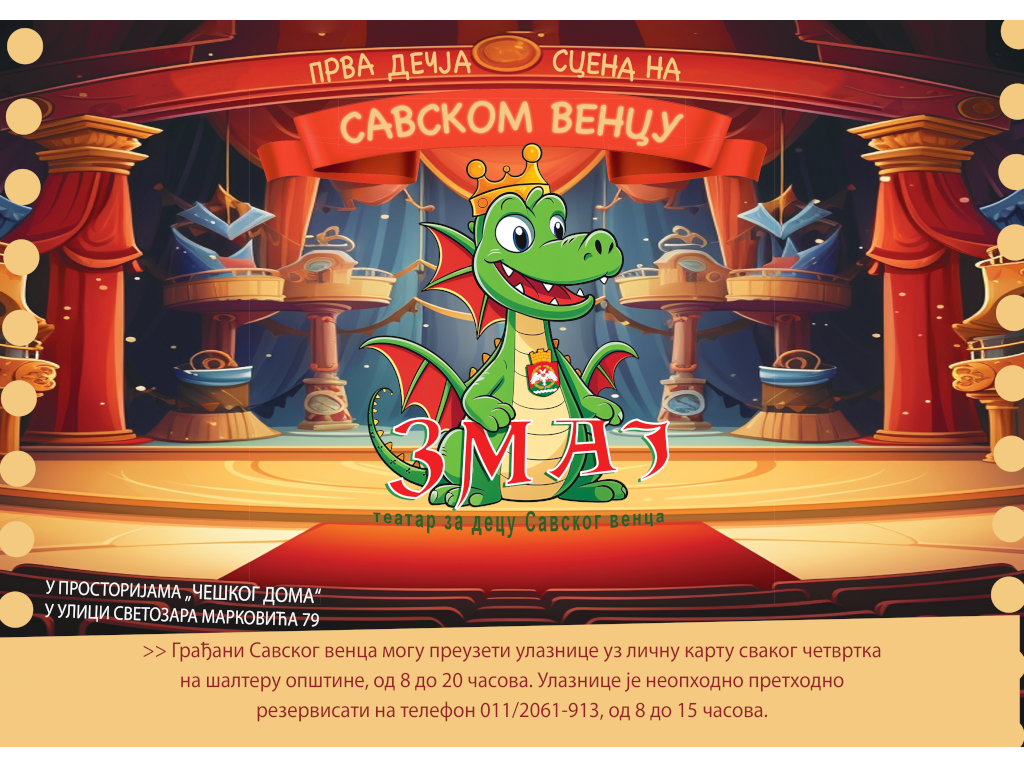 Iz Teatra Zmaj napominju da su ulaznice besplatne, ali da je broj mesta ograničen, i to za decu Savskog Venca.