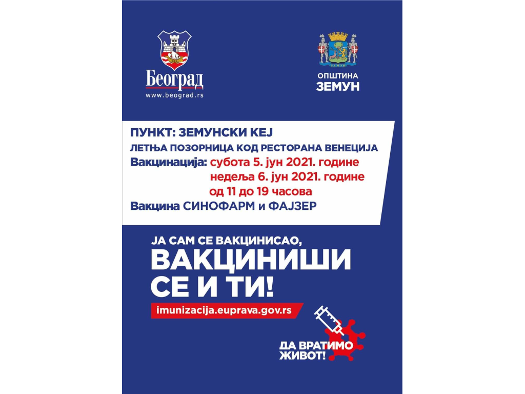Građani će imati priliku da prime vakcinu Sinofarm (kinesku) i Fajzer, saopšteno je iz Gradske opštine Zemun.