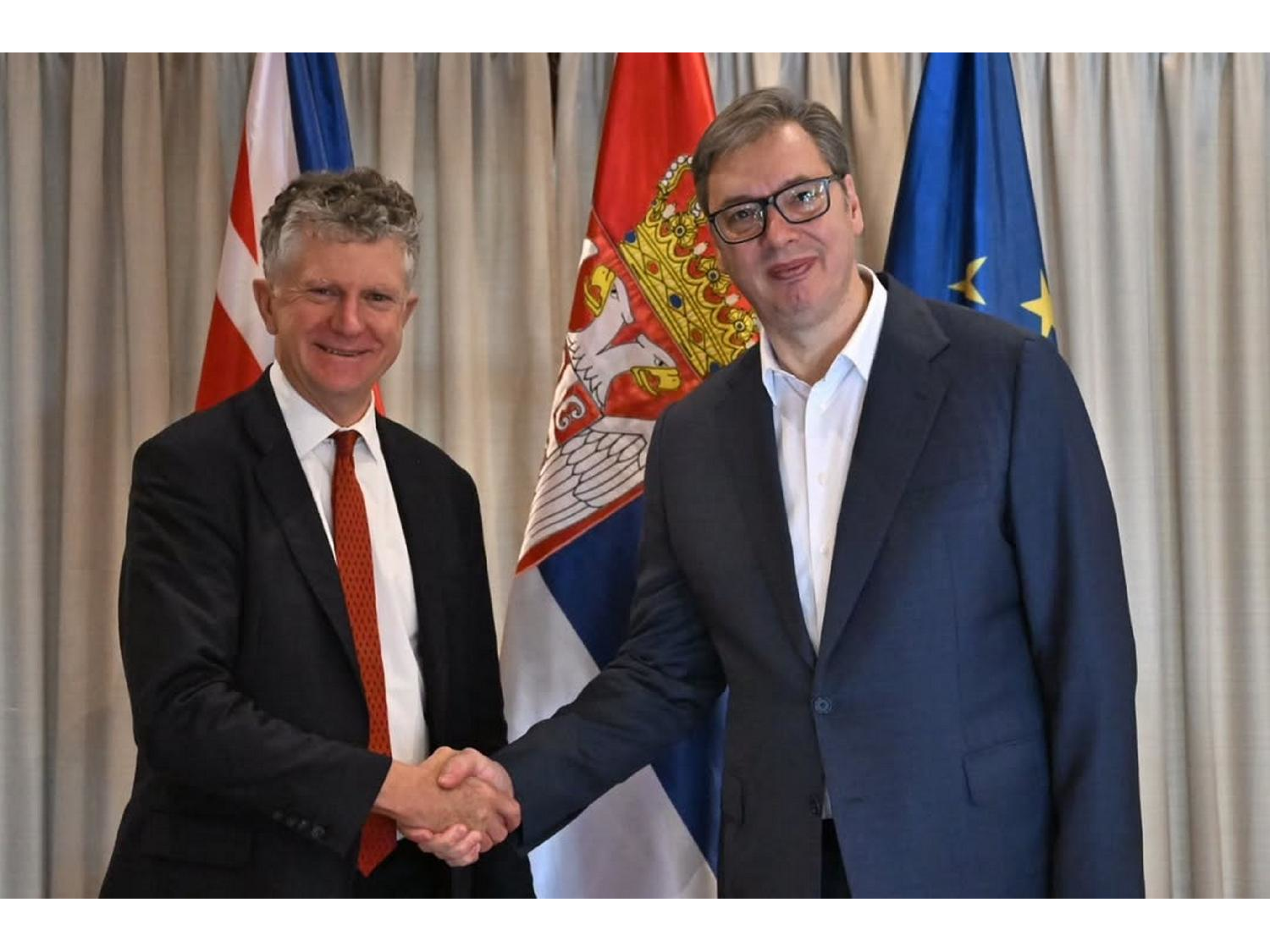 Predsednik Srbije Aleksandar Vučić danas je u razgovoru sa savetnikom za nacionalnu bezbednost premijera Velike Britanije Džonatanom Pauelom poručio da su očuvanje mira i stabilnosti od ključnog značaja i da dijalog i međusobno razumevanje ostaju najbolji put za prevazilaženje izazova.
