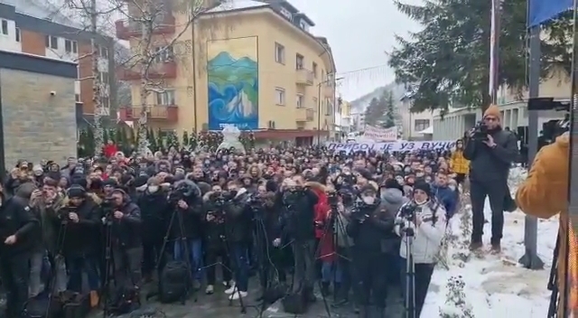 "Ako neko misli da to neko može i treba da sruši, imaće posla sa državom, a država po pitanju očuvanja mira i stabilnosti neće imati milosti", poručio je Vučić u Priboju.