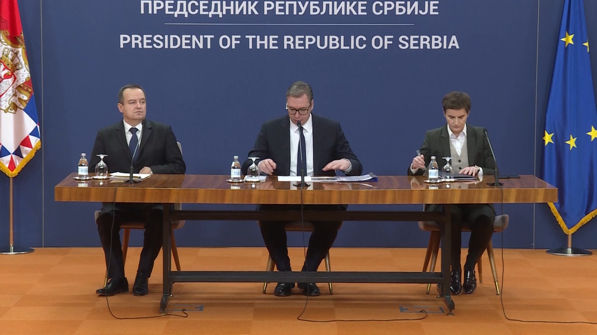 On je, u javnom obraćanju posle sednice Saveta za nacionalnu bezbednost, pročitao zaključke u kojima se naglašava da Srbija poštuje norme međunarodnog javnog prava i ostaje privržena poštovanju načela teritororijalnog integriteta Ukrajine.