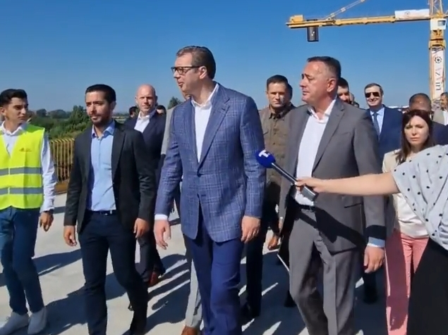 "To su neverovatne stvari, Srbija više nije ista zemlja. Ovaj most je malo remek delo, hvala ljudima iz Azvirta. Požurite, da vam materijal ne bi bio još skuplji", poručio je Vučić i istakao da su radovi finansirani direktno iz budžeta, "našim novcem".