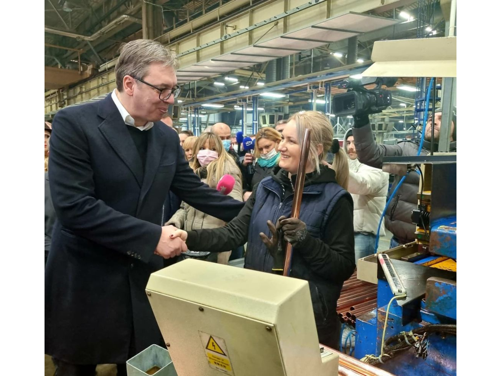 Mi još malo da pomognemo a ti još malo da povećaš plate, rekao je Vučić direktoru fabrike Fleks Akademi, koji je istakao da su zainteresovani da na placu pored postojećeg naprave novi pogon u kome bi mogli da zaposle još oko 150 radnika.
