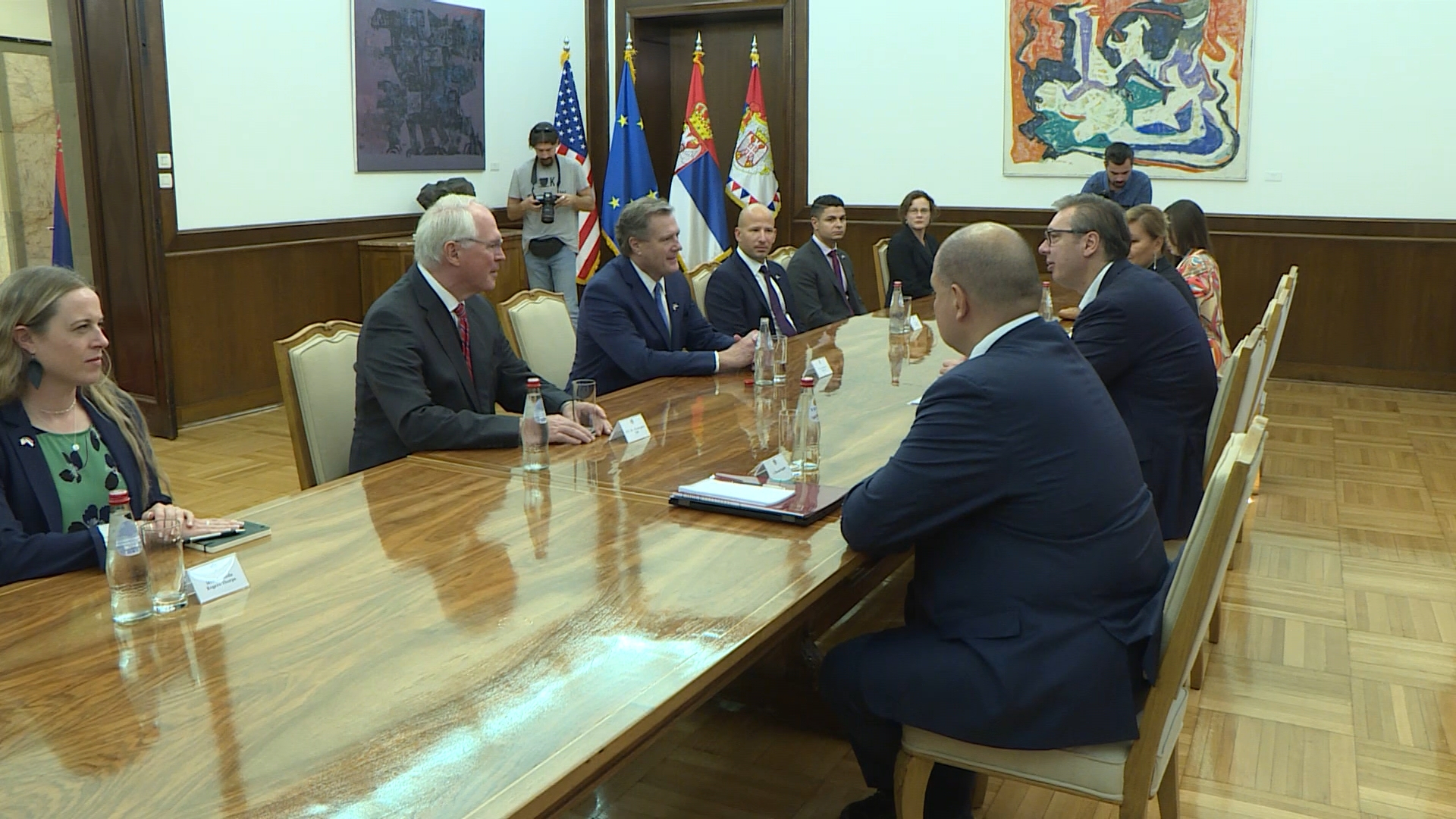 Tom prilikom, predsednik Vučić je istakao da je Srbija posvećena što sadržajnijoj saradnji sa američkom administracijom, te da je unapređenje odnosa Srbije i SAD od najvećeg značaja, posebno u oblasti ekonomije. Takođe, konstatovao je da je robna razmena između dveju zemalja na rekordnom nivou i da će prvi put da pređe 1,2 milijarde dolara, saopštila je Služba za saradnju sa medijima predsednika Republike.