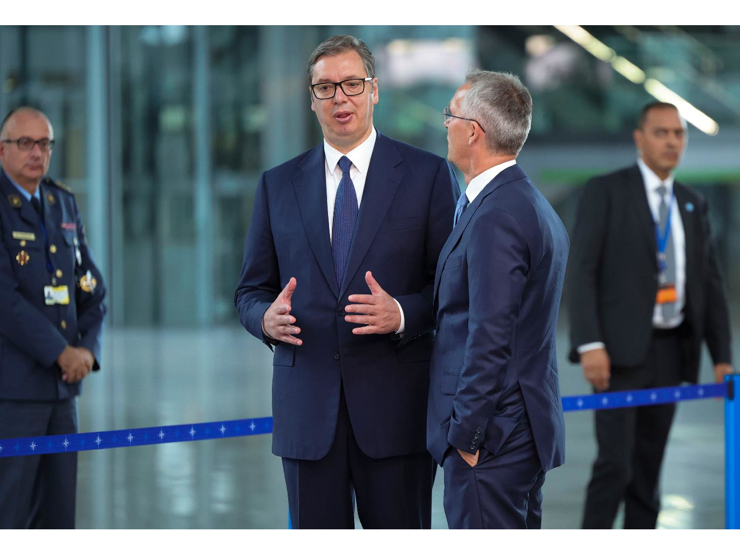 Stoltenberg je na konferenciji za novinare sa predsednikom Srbije Aleksandrom Vučićem rekao da ako bi stabilnost bila ugrožena, Kfor bi bio spreman da intervenište da se obezbedi sloboda kretanja svih ljudi na Kosovu.