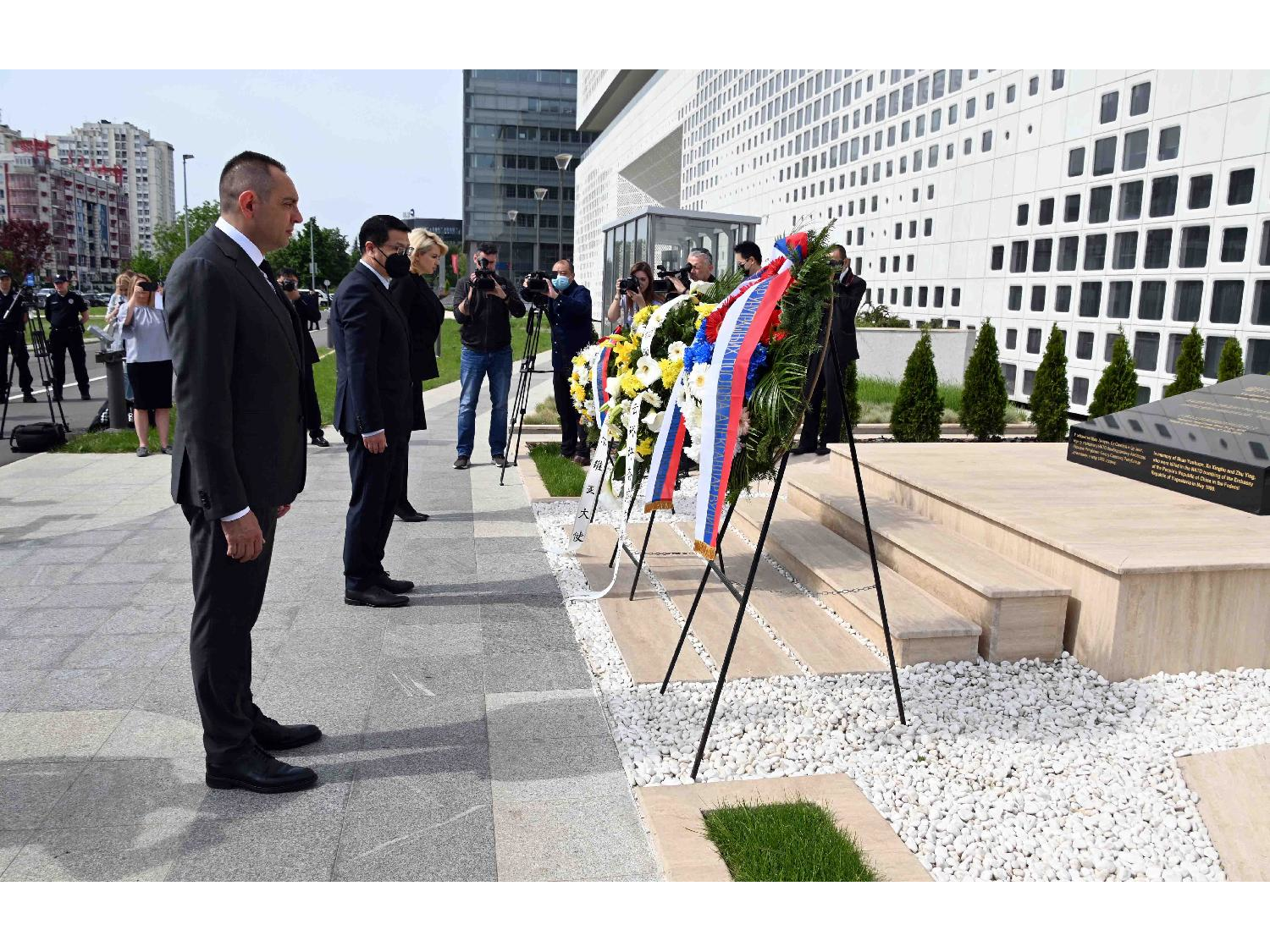 Vulin je položio venac na spomen-ploču poginulim kineskim novinarima ispred nekadašnje zgrade kineske ambasade u Beogradu.